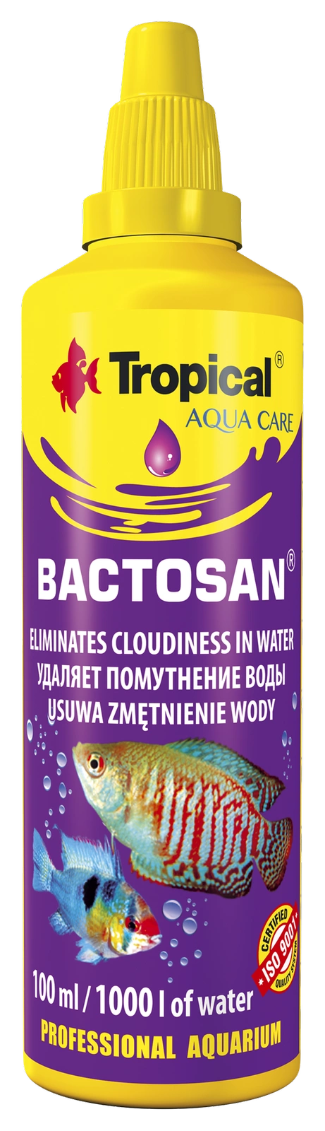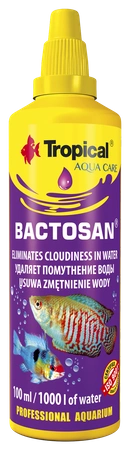 • Bactosan is a preparation designed to clarify aquarium water that has become cloudy as a result of poor filtration or overfeeding of fish. Capacity: 100 ml.
