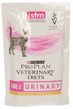 PURINA Veterinary Diets UR Urinary is a complete and balanced wet diet food with turkey for adult cats, administered to dissolve struvite stones and reduce the frequency of struvite stone recurrence, with urine acidifying properties and low magnesium content.