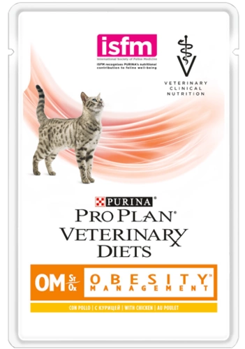 PURINA Veterinary Diets OM Obesity Management is a wet diet food for cats that supports weight loss by providing a low amount of energy. It is a complete and balanced food for adult cats that enables safe and effective weight loss.