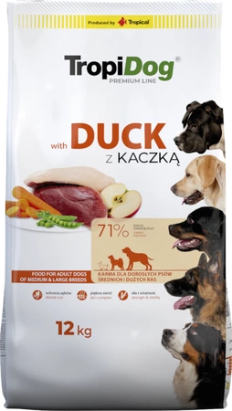 Tropidog Premium Adult Medium & Large Breed Duck with Rice 12kg - Product Description