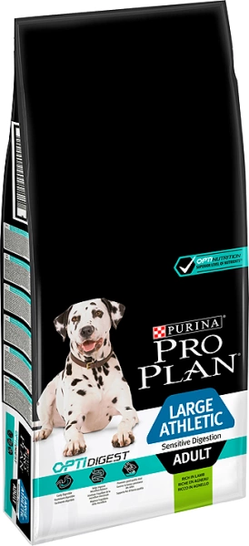 If your adult large breed dog has an athletic build and a sensitive digestive tract, try Purina PRO PLAN Large Athletic Adult with OPTIDIGEST formula.