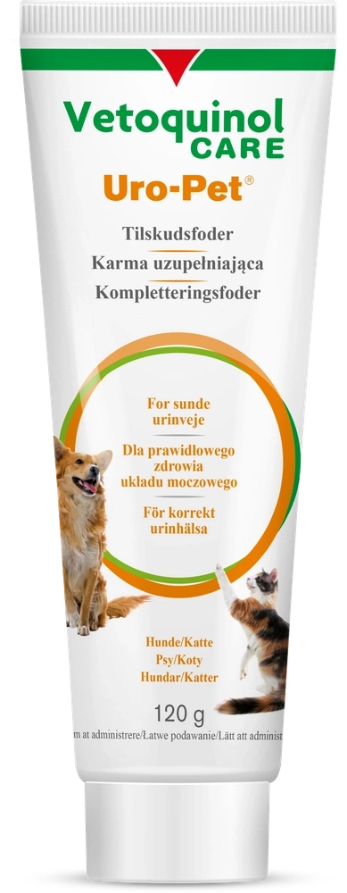 Uro-Pet - a dietary complementary food for dogs and cats. It is used to prevent the re-formation of struvite urinary stones thanks to its DL-methionine content, which has an acidifying effect on urine. It has a supportive effect in cats in diseases of the lower urinary tract (formerly SUK feline urological syndrome) and in dogs with a tendency to form struvite urinary stones as a prophylaxis.
