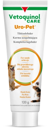 - Supplementary feed in the form of a paste for dogs and cats to reduce the risk of forming urinary stones and struvite stones. 120g pack.