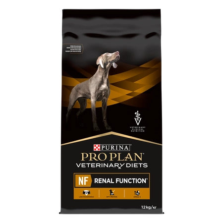 PURINA Veterinary Diets NF Renal Function is a dietary food for dogs, low in phosphorus and with a limited amount of high-quality protein, designed to support kidney function in cases of chronic renal failure. It is a complete, balanced food for adult dogs.