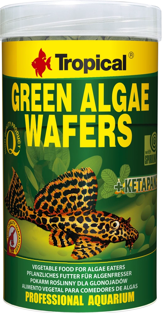 Green Algae Waffers is a vegetable food in the form of sinking wafers with added spirulina, intended for the daily feeding of those fish species of the family Loricariidae which require a high proportion of plant and algae ingredients in their diet, e.g. Sturisoma aureum, Pterygoplichthys pardalis, Panaque maccus, etc.