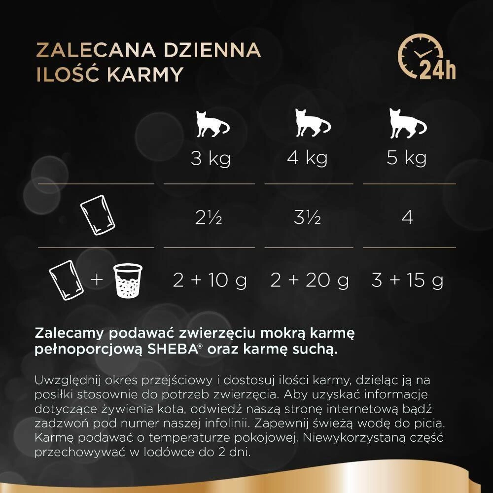 A cat weighing 4 kg needs 3½ sachets of wet food or 2 sachets of wet food and 20 g of dry food per day